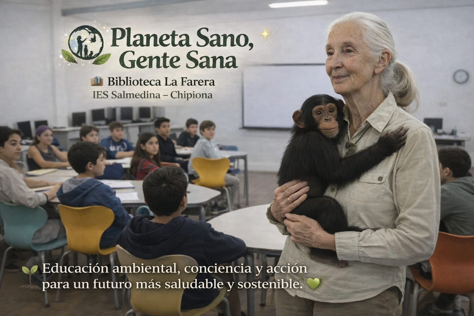 El próximo 10 de marzo, el IES Salmedina acogerá en su Aula Ateca tres talleres organizados por el Instituto Jane Goodall en España, gracias a la coordinación de nuestra Biblioteca La Farera y la colaboración del Departamento de Biología.