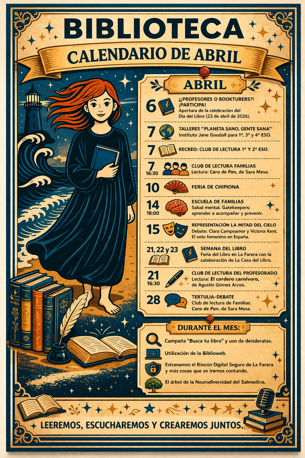 Comenzamos con **📚 ¡¿Profesores o booktubers?! 🎬**, animando al profesorado a recomendar lecturas para celebrar el **Día del Libro**.