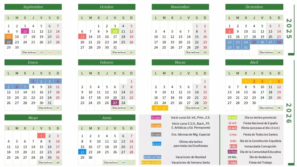 - Lunes a Viernes de 8:15 a 14:45 horas. Las clases se imparten en módulos de 1 hora, con un recreo de 30 minutos de 11:15 a 11:45 h.