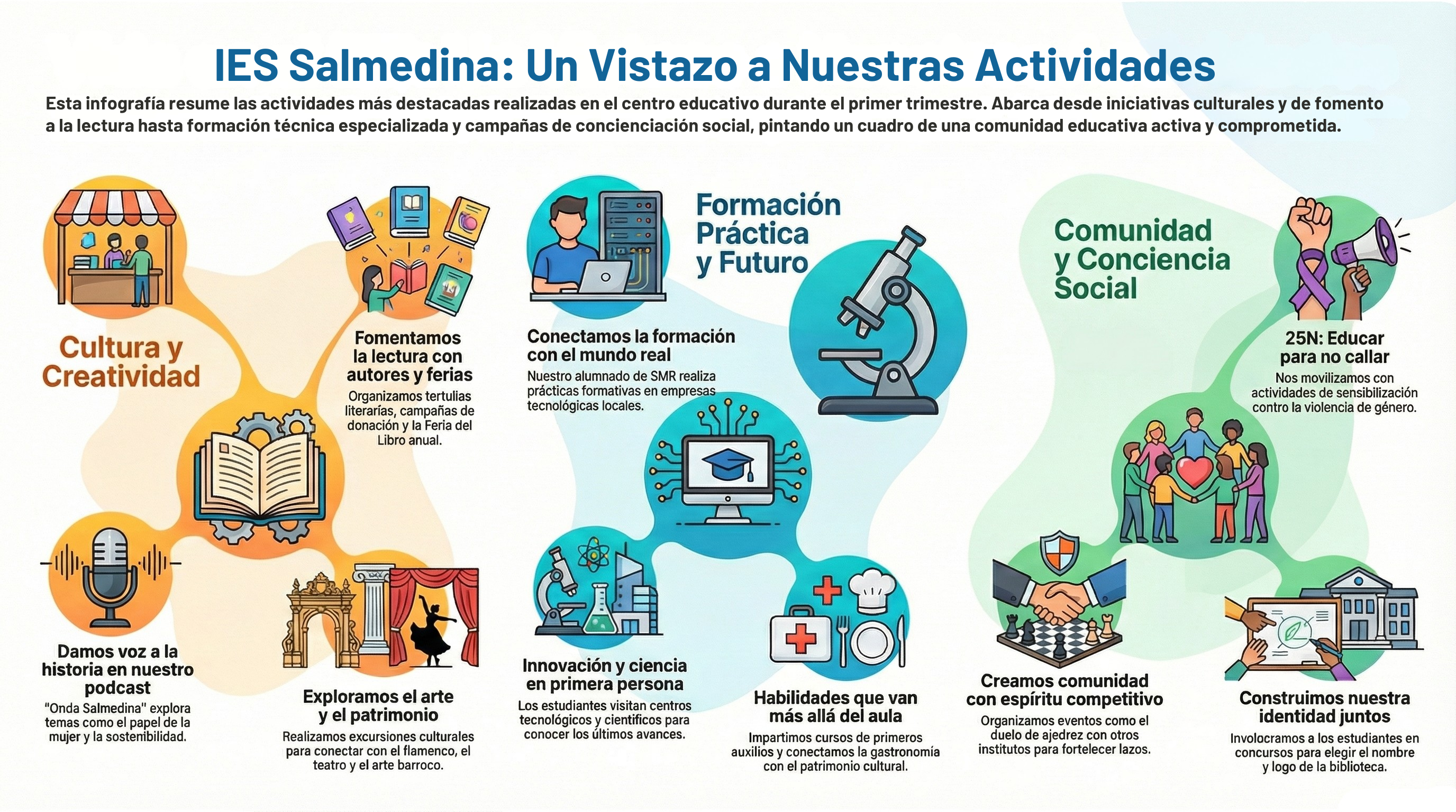 Ese entusiasmo por compartir ideas se traslada a las ondas con nuestro podcast Onda Salmedina. En sus episodios más recientes, nos hemos emocionado con los deseos de la época navideña, hemos reflexionado sobre la importancia de la sostenibilidad y el cuidado del planeta, y hemos rescatado del olvido las voces de mujeres escritoras que fueron ignoradas por la historia en su tiempo.